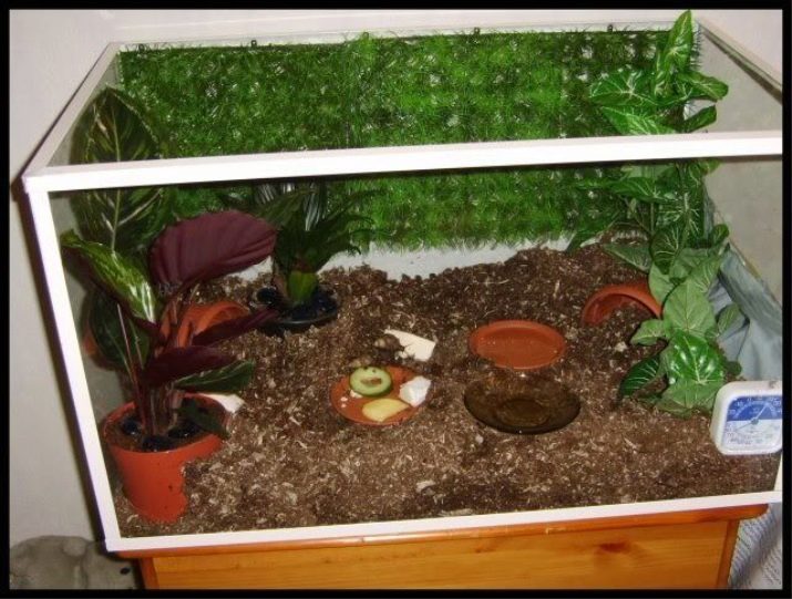 El sòl seleccionat s’aboca al terrari en una capa uniforme, el gruix del qual està determinat per la mida de la còclea mateixa.