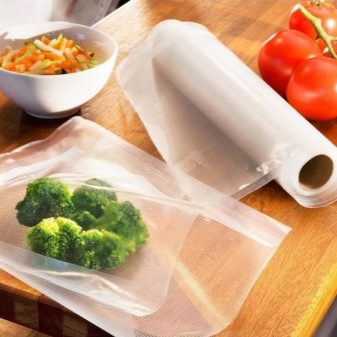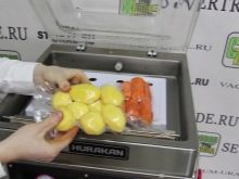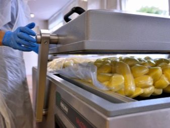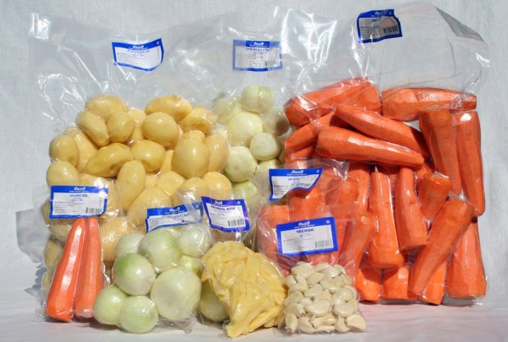 L'envasament en bosses de producció es realitza mitjançant màquines professionals de cambra. Una porció de verdures es col·loca en una bossa i es col·loca en un compartiment especial. Es premeu un botó, després del qual s'elimina automàticament l'aire de la cambra i del paquet. Després d’això, l’envasament segellat es segella.