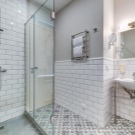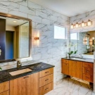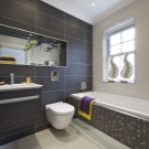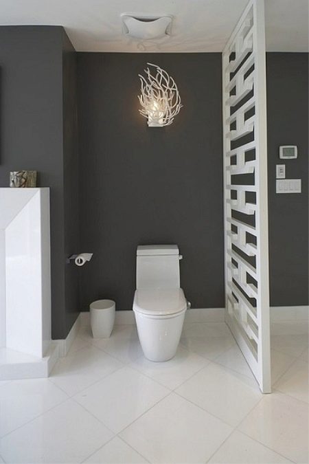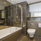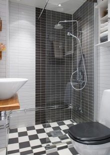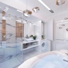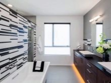 Ideal per a grans espais i per a petits. Podeu aconseguir l’excel·lència en aquests projectes mitjançant els darrers materials d’acabat. Per a la disposició de les habitacions hauria de triar fontaneria lleugera, que semblarà magnífica contra un sòl negre. Per a la decoració de parets, heu de triar una rajola lleugera amb un patró.