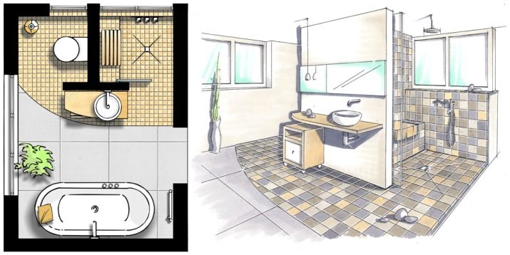 La disposició de la sala per a procediments d’aigua es considera difícil, perquè no només cal mesurar les dimensions de l’habitació amb la màxima precisió possible, sinó també elaborar correctament un esbós de l’interior, que serà posterior. Perquè aquesta habitació sigui còmoda i compleixi totes les seves funcions, és important utilitzar racionalment cada centímetre quadrat. Això és especialment important per a les petites habitacions del "Jrushchev", on ni hi ha manera d'instal·lar una rentadora.