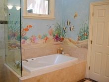 Decoració creativa de paret marina en bona harmonia amb la tècnica de pintura en aquarel·lasuavitza les rugositats de reparació menors.