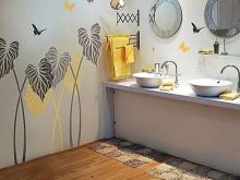 Entre els mètodes per pintar parets al bany, es poden distingir solucions de disseny més populars que permeten obtenir resultats força espectaculars. En la tècnica de l’aquarel·la s’utilitzen diversos tons de pintura, un recipient d’aigua i una esponja d’escuma per aplicar. Una eina submergida en pintura es submergeix en aigua i després toca la paret amb moviments lleugers i curts.