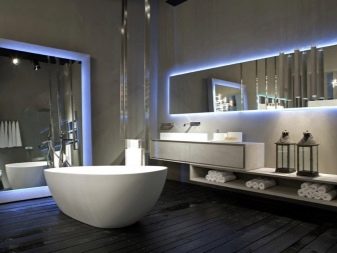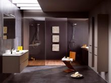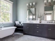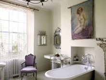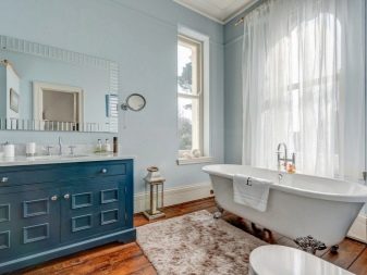 - Modern. Pintura de parets planes de tons nobles i profunds, amb una textura mate, és un element característic d'aquest estil. L'Art Nouveau és adequat per a amplis banys, permet l'ús de tons vi, corall, blau, malachita o verd.
