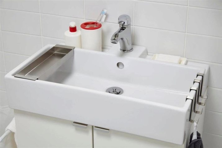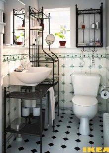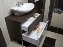 Per emmascarar canonades, podeu utilitzar suport de mobles amb calaixos. Sempre es pot amagar no només les comunicacions, sinó també guardar accessoris per al bany. Els models de bracket s’utilitzen tradicionalment en banys petits.