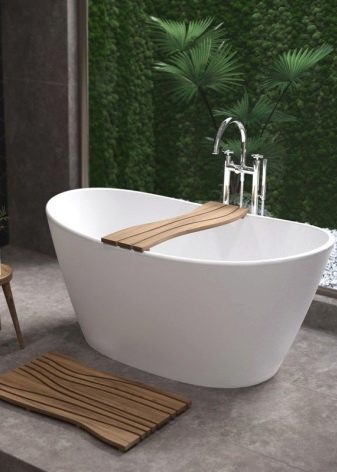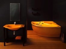 - Acrílic Un dels materials més moderns per a la producció de fontaneria, conserva perfectament la calor, té un pes baix i és barat. Tot i això, no va tenir cap inconvenient: la neteja de fontaneria acrílica s'ha de netejar amb eines especials, ja que aquest material és altament sensible a qualsevol abrasiu.