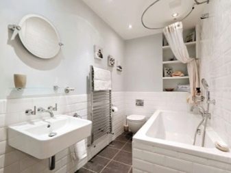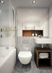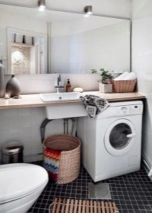 - Electrodomèstics integrats. Aquesta és la solució òptima per a zones petites. Aquesta fontaneria permet equipar el bany amb tots els principis bàsics d’ergonomia, estalvia espai lliure, allibera espai, aporta lleugeresa i llum a l’habitació higiènica.