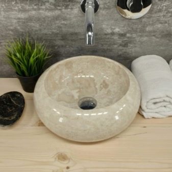 - Marbre Aquest lampisteria és durador, durador i pràctic. Té un aspecte molt luxós i, per tant, no és barat. Però l’elevat cost no és l’únic menys de marbre, la superfície d’aquesta pedra és porosa, respectivament, hi apareix una placa molt ràpidament, cosa que no és fàcil de netejar.