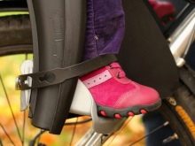 - Quan condueix una bicicleta els peus del nen s’hauran de col·locar completament a la placa de seguretat i subjectar-los amb corretges per no pujar al volant.