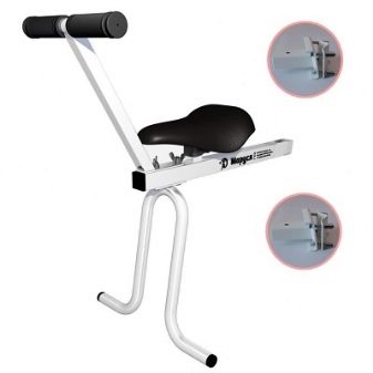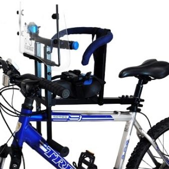 Un altre model interessant de producció russa. El seient de la bicicleta està dissenyat per a nens que pesen fins a 30-35 kg i té una configuració lleugerament inusual. El seu disseny consisteix en una cadira de muntatge, un suport de muntatge, un reposapius en forma de T i un mànec estàtic desmuntable amb pinces toves. El muntatge es realitza al seient de la bicicleta, no obstant això, el nen no es troba a la part posterior del progenitor, sinó al davant.