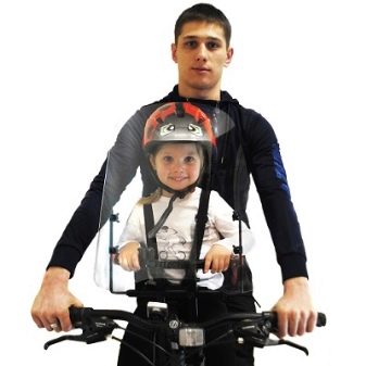 Aquest tipus de muntatge implica la instal·lació de seients per a passatgers molt joves, el pes no supera els 10-12 kg. Això es deu al fet que el transport de nens més grans al volant dificulta la conducció, crea una gran càrrega de pes a la forquilla davantera o a l'amortidor i dificulta la visualització.
