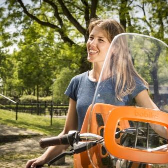 - També cal parar atenció a la presència de protecció lateral, que idealment hauria de tapar el nen des de la part superior de l’esquena fins al peu de peu. Per evitar lesions a les mans del nadó en cas de caiguda de la bicicleta, és millor comprar models amb reposabraços.