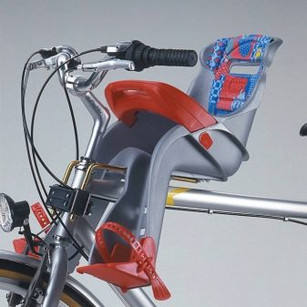 Quan col·loqueu el nen davant, el seient es munta sobre el marc portador de la bicicleta. En la majoria dels casos, aquests dissenys s'utilitzen en bicicletes amb amortidors posteriors. La capacitat de càrrega de les mostres del bastidor no sol superar els 15 kg, sovint no hi ha passos. Aquests models tenen diverses restriccions d’instal·lació i no es poden fixar en bastidors amb cables de commutació de velocitat i fre que corren per la creu superior.