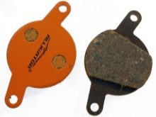 No obstant això En pistes llargues, les pastilles orgàniques es mostren molt pitjors que les metàl·liques, ja que a alta temperatura l’enllaç es fon i tot el material es desgasta ràpidament. A més, frenen malament a les carreteres humides. Les pastilles de metall fan front a la calor molt millor que les orgàniques, funcionen constantment en estat humit, però són sorolloses.