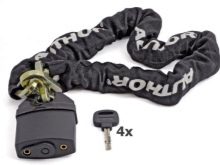 Aquests dispositius són una cadena antirrobo galvanitzada amb un triple enduriment, normalment amb una trena estreta. Un avantatge evident d’aquests models és que reforçar les tisores contra ells serà absolutament inútil. Un bloqueig per a bicicletes només podrà menjar un tallador massís de cargol, que no tots els lladres tindran amb ell. Malgrat la relativa fiabilitat d’un tancament tancat, no heu de deixar la bicicleta sota la seva protecció durant molt de temps. Alguns lladres poden ser força persistents per simplement tallar els enllaços del dispositiu.