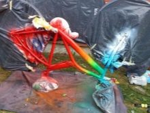 Normalment bicicletes antigues tacat Això millora les seves característiques decoratives. Abans de començar a tacar, netejar la pintura antiga. Per fer-ho, utilitzeu un raspall metàl·lic i una tela de sorra gruixuda. Després d'això, la superfície es desgreixa i es revesteix amb un imprimador.