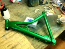 Les bicicletes antigues estan pintades amb pintura en esprai. D’aquesta manera s’estalvia el material i s’evita les taques del material colorant. Després que la pintura s'asseca, el color es fixa amb vernís en 1-2 capes. La cobertura pot ser variada (simple, bicolor, parcial).