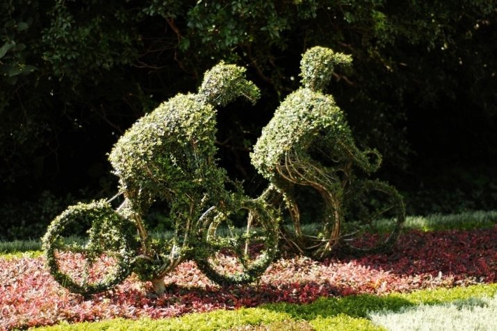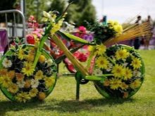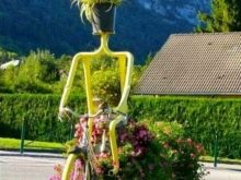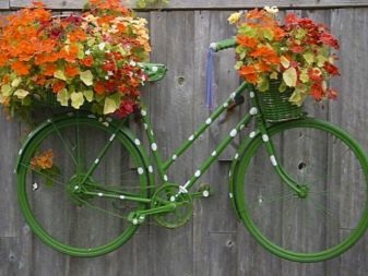 Sovint, una decisió de disseny no es limita només a les cistelles. Sovint es posa una bicicleta amb cistelles de flors en un lloc destacat del jardí, envoltada de testos amb plantes florals. Especialment pintorescs artesans poden crear siluetes de persones a partir de flors. Quan mires un disseny així, tens la sensació que una persona floral està asseguda a la bicicleta.
