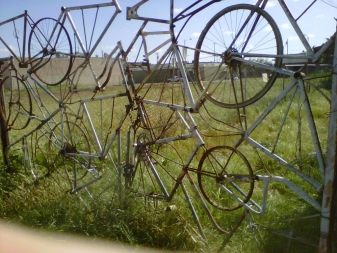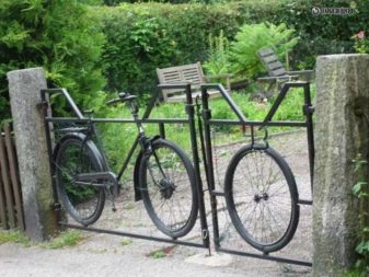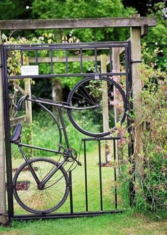 De vegades creen composicions de paisatge. Si hi ha moltes rodes, s’utilitzen per tancar llits de flors i llits de flors. I també amb la seva ajuda creen comportes, complementant l'estructura metàl·lica amb tanques d'un parell de bicicletes. Al mateix temps, les portes estan pintades d’un sol color.