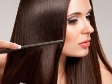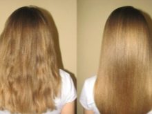 - alguns compostos suggereixen una fase calenta; en aquest cas, els rínxols tractats es redrecen amb un ferro de ferro o de planxar, passant 3-4 vegades cadascun; el règim de temperatura s’estableix tenint en compte les característiques del cabell;