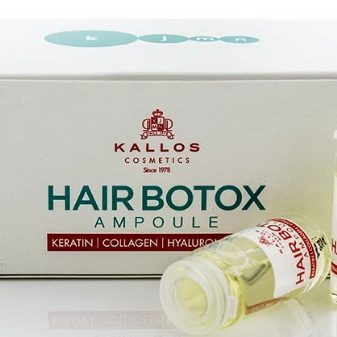 - Botox de cabell Kallos. Aquesta és potser una de les millors eines dissenyades tant per al saló com per a la cura de la llar. L’estructura de la barreja s’omple d’un complex mineral-vitamínic, aminoàcids i altres substàncies necessàries per al cabell. El conjunt consta de 6 ampolles de sèrum, a més d’una xeringa i uns guants, que faciliten l’aplicació de la composició al cabell.