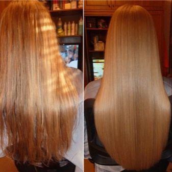 - queratina i col·lagen - components proteics que omplen tots els buits dins de cada cabell, de manera que es forma l’anomenat marc elàstic; a causa d’aquest efecte, el pèl es fa menys trencadís i resistent a les llàgrimes;