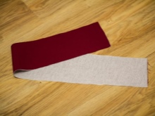 - Processem la vora superior del producte amb un cinturó cosit. Per fer-ho, utilitzeu una tira de material adhesiu.