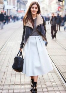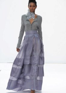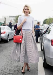 Hi ha una norma important segons la qual cal triar la part superior d’una silueta més senzilla i tranquil·la per a una faldilla esponjosa. Per tant, és millor deixar de banda coses llargues i voluminoses.