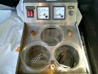 Al mateix temps, es prepara una solució líquida a partir de sals de rodi. Els productes es submergeixen en un bany líquid per on passa un corrent elèctric. Durant el processament, les molècules d’aquest metall de platí formen una capa uniforme i llisa.