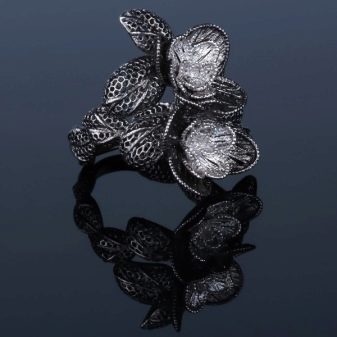 En aquest cas, es conserven les propietats protectores habituals de la capa metàl·lica, mentre que els objectes reben una noblesa noble i refinada. Amb aquest procés, els productes adquireixen un aspecte antic. L’assistent pot ajustar la saturació del recobriment: del gris clar al negre saturat. Aquesta opció de processament és ideal per a productes amb pedres o perles negres. L’efecte original s’aconsegueix a causa de la composició química especial.
