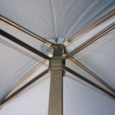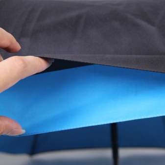 - Alta resistència. El llençol del paraigua està format per 4 parts triangulars que formen un quadrat. Les raigs es disposen per parelles al llarg de les línies en diagonal de les costures, degut a les quals el producte guanya força i resistència a la flexió fins i tot amb fortes ratxes de vent.
