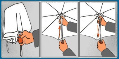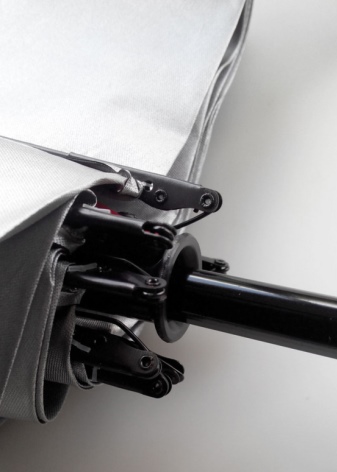 - Dispositiu semiautomàtic: el mecanisme més comú en la majoria dels paraigües, la relació òptima d’ús còmode i la freqüència d’avaries. Menys: encara s’ha de plegar manualment la vara.