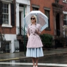 Estil retro: un producte completament transparent amb una vora fina al voltant de les vores: una franja de negre o blau. Cal triar un vestit blau d’un estil estricte. Se li posa un embenat al cap: un mocador o mocador. Bossa i sabates de colors calmants o, per contra, de colors vius, un accent peculiar.