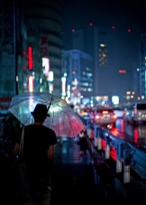 - Visió general dels voltants. Un paraigua ajuda a una persona a relaxar-se, dóna llibertat i confiança. I els corrents de pluja que flueixen per la cúpula són un espectacle desconcertant, que és un plaer veure.