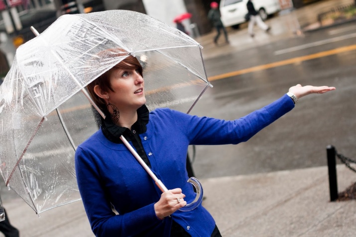 - Color. Un paraigua pot tenir una cúpula completament transparent o algunes estampes multicolors que donen encara més atractiu. Hi ha models amb cúpules incolors de diversos tons: vermell, groc, blau i altres.