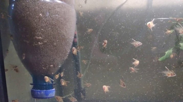 Potom počkají, až se částice žloutku usadí, vypustí vodu a vylije čerstvě, v důsledku toho by se měl zbavit zákalu a vyčistit se. Potom se zbývající částice a malé množství vody nalije na bubliny kompresoru a potěr je sní, dokud se neusadí na dně.