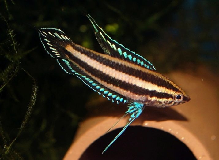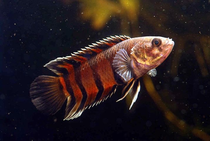 - Ktenopoma osmcestný. Postranně zploštělé, vysoké tělo 8 cm tmavě hnědé ryby je pokryto pruhy skládajícími se ze skvrn různých barev. Barva pruhů závisí na podmínkách zadržení. Pruhy mohou být hnědé, světlejší odstíny než hlavní barva nebo modré, včetně přechodných barev. Ktenopom z osmi pruhů je z hlediska ochrany území mnohem agresivnější než anzorg, takže k výběru akvária musíte přistupovat pečlivě.