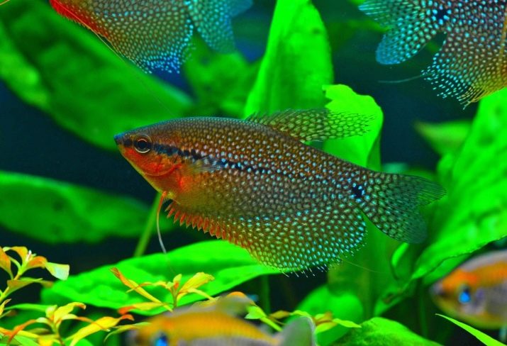 Medové gourami červeno-žlutých květů snadno dává potomkům, spolu s lily, proto pro čistotu druhu byste tyto dva druhy neměli chovat v jednom akváriu. Pruhované koloseum a podobná lyabióza jsou červeno-hnědé barvy s jasně modrým podélným pruhem. Lyabióza je červená s pruhem i bez něj.