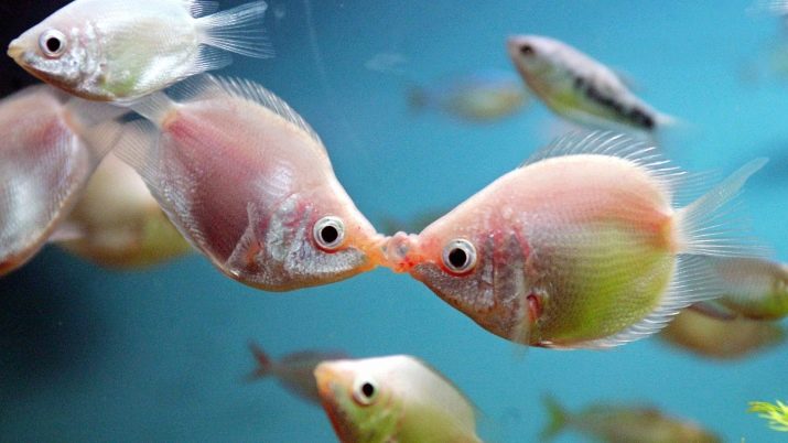 Líbání gourami je samostatná jednotka Korunovaný - Helostomous. Tyto ryby dostaly své jméno pro zvláštní způsob stravování, boje a námluvy. Podlouhlá ústa ryb končí mobilními „rty“ s vnitřními zuby rohů, s jejichž pomocí gourami škrábají řasy.