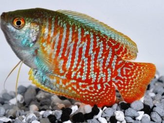 - Výběr akvária. Hejno 6 ryb bude mít dostatečnou kapacitu 80 litrů, pro tření budete potřebovat další 15 litrovou nádrž. Ryby docela skákají, takže je lepší se předem obávat přítomnosti víka. Uvnitř akvária jsou umístěny ozdoby a přístřešky: jeskyně a jeskyně, naplavené dříví, kameny, plastické rostliny.