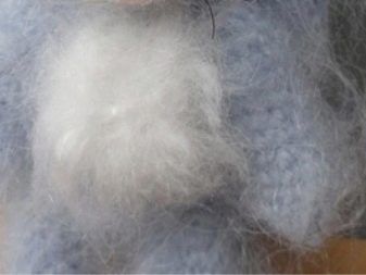 - Získejte načechranou přízi: doporučená „tráva“ od „Kamteks“ nebo mohair. Barva může být libovolná, ale pokud chcete, aby zvíře vypadalo přirozeněji, zvolte nitě bílé, šedé nebo béžové.