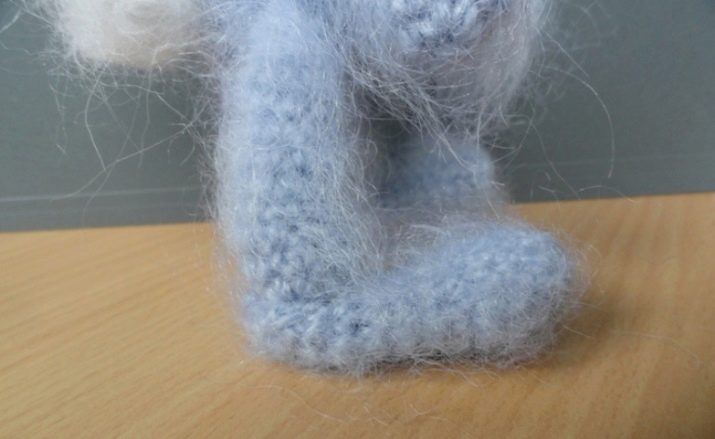 Připevněte pletení, nechte dlouhé tělo pro šití tlapek do těla.
