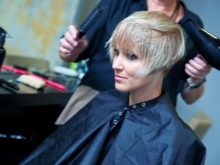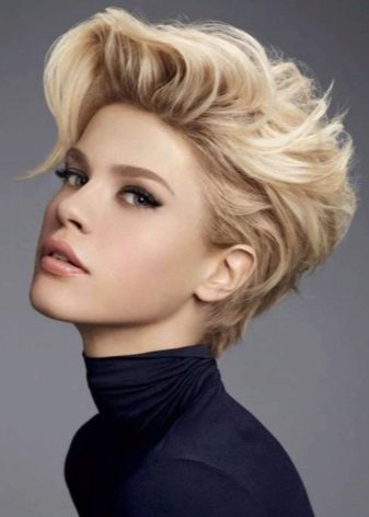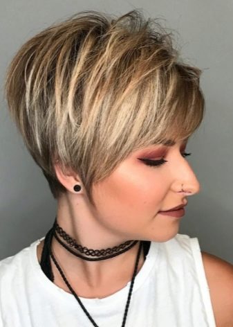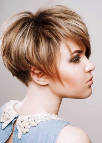 Na krátkých vlasech vypadá správně balayazh skvěle. Účes se začne hrát s novými barvami, pokud se na něj použije tento typ zbarvení. Spolu s tím je ženský obraz také přeměňován a stává se působivější a sexuální.