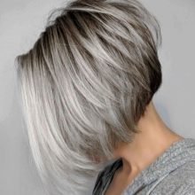 V dnešní době jsou popílky („šedé“) na vlasech velmi populární, zejména pokud jsou světlé (nebo zesvětlené). U tohoto řešení bude vhodný plynulý přechod ze světle hnědých vrcholů na téměř sněhově bílé špičky. Tento zajímavý a diskrétní barevný tandem bude vypadat skvěle na krátkých vlnitých kadeřích.