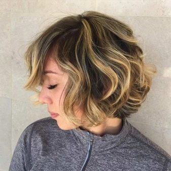 Zbarvení krátkých vlasů ve stylu balayazu bude obzvláště atraktivní a delikátní, pokud se na vlnité vlasy obrátíme k „sladkým“ karamelovým odstínům. Takové rozhodnutí bude úžasné a bude přitahovat velkou pozornost. Karamelové odstíny vypadají elegantně jak u mladých dívek, tak u starších žen.