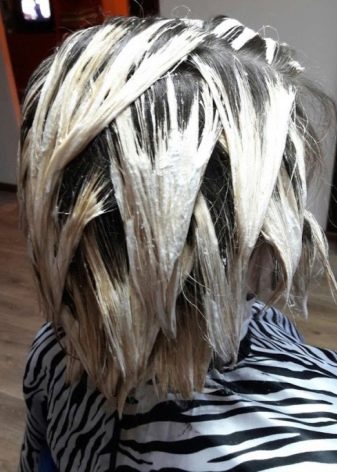 Většina nevýhod spojených s touto metodou malby se nedá setkat, pokud se u takové služby obrátíte na dobrého pána.Nestojí to za to ušetřit, protože pokud to uděláte nesprávně, budete muset odříznout poškozené prameny. Pokud mluvíme o dlouhých a hustých vlasech, pak ztráty budou neviditelné, ale pokud je účes krátký, pak bude poškození působivější.