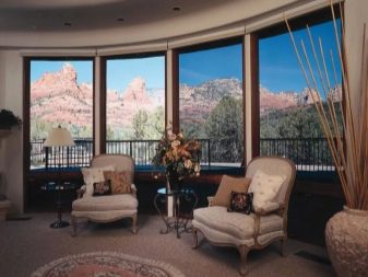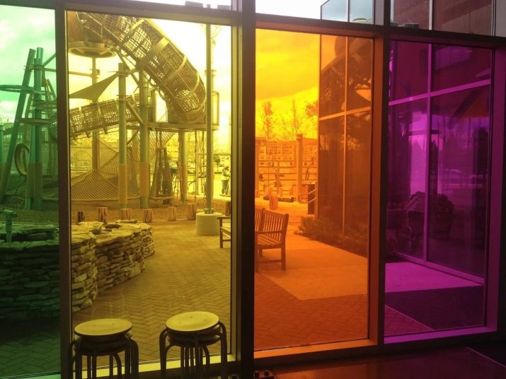 Pokud má místnost vitráže nebo panoramatická okna, je rozumné zvážit jejich tónování pomocí architektonického krytu. Zvláštností je, že se zde kombinují jak ochrana proti slunci, tak ochranné vlastnosti materiálu.
