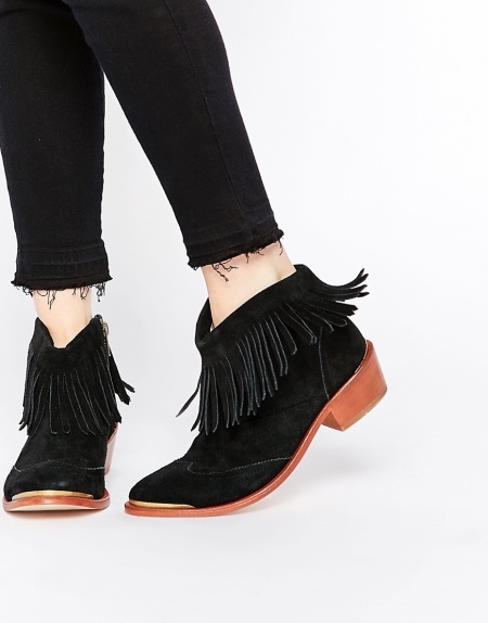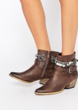 Pro zimní vzhled je důležitý model s klopami z ovčí kůže. Laconic forma kotníkových bot může mít jinou patu. Jako dekorace pro klopu mohou být použity řetízky s koženým pruhem, popruhy nebo vázané luk s kovovými kamínky.