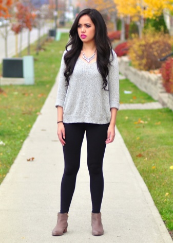 Délka nohou může být vizuálně zvětšena, pokud si vyberete hit ve stejném tónu s kalhotami. Při vytváření jedinečného stylu s oblečením nebo sukní byste měli dodržovat pravidlo: čím vyšší je model kotníku, tím kratší by měla být délka oblečení.