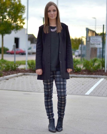 Jarní a podzimní obrázky přilnou k krátké délce vnějšího oděvu: do středu stehna. Krásné kožené páry s nízkým topem zdobí košili, podlouhlou bundu a pevné kostkované kalhoty.