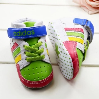 Pro chlapce i dívky existují modely dětských kožených tenisek - světlé nebo jemné barvy, ženská výzdoba, tisky. U chlapců se používá omezenější barevné schéma.